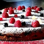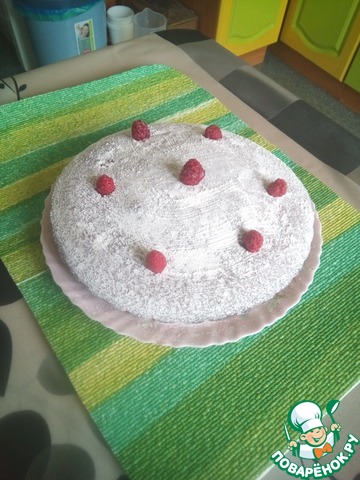 Украшаем пирог сахарной пудрой и свежими ягодами и подаем к столу!