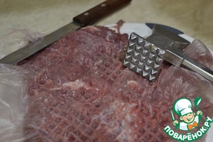 - Говядина (без косточек, кусочек должен быть таким, что бы можно было отбить в пласт) — 700 г