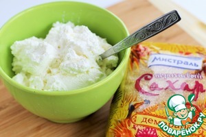 Между тем, используя насадку для взбивания смешайте размягченный сливочный сыр с сахаром.
