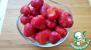 600 гр. клубники нарежьте на половинки и отложите в сторону. -