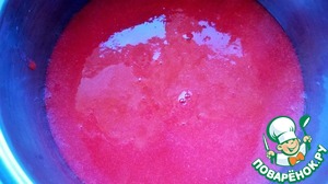 В горячую клубничную смесь добавьте размягченный желатин и взбейте венчиком, пока желатин не растворится и равномерно распределиться в клубничном пюре.