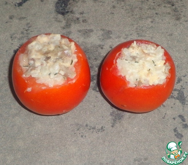 Вкусное и несложное в приготовлении дополнение к основным блюдам в виде запеченных помидоров с аппетитной начинкой.