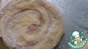 Тесто разделить на две части, в одну вмешать какао. Раскатать два пласта, и положить друг на друга. Свернуть в рулет, разрезать на одинаковые кусочки. -