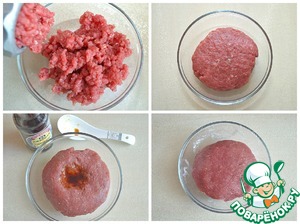 Прокрутить говядину и репчатый лук на мясорубке два раза. Фарш тщательно вымешать. Добавить соевый соус Киккоман еще раз тщательно вымешать, накрыть пищевой пленкой, убрать в холодильник минимум на 1 час, у меня фарш стоял всю ночь.