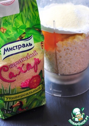 Столовую ложку универсального сахара Мистраль положить в кофемолку и смолоть в пудру.