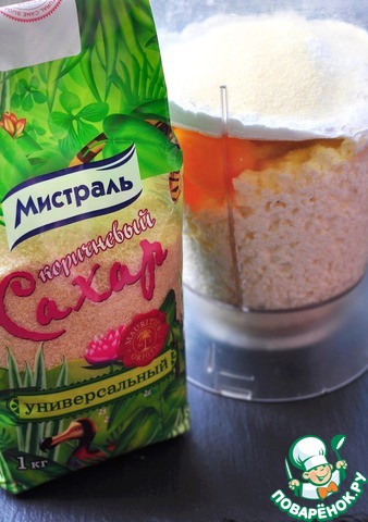 - Сахар коричневый (универсальный + для крема 2-3 ст.л. ) — 130 г