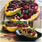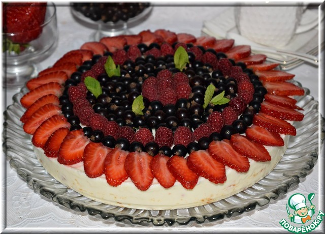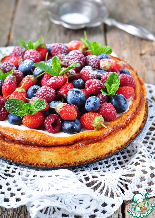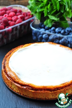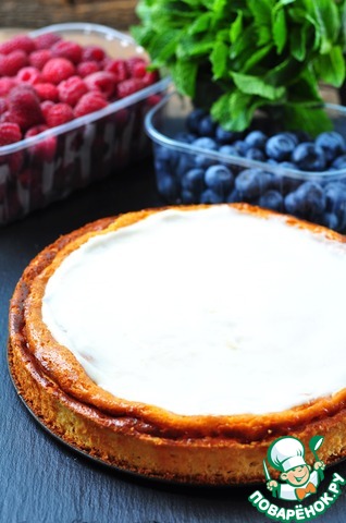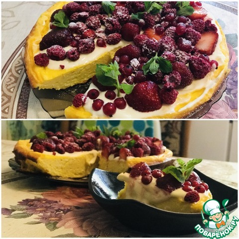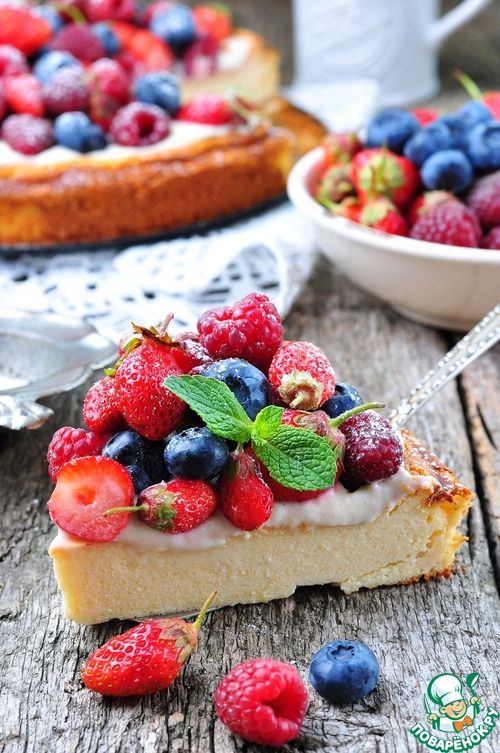 Рецепт «Творожная запеканка со сметанным кремом и ягодами»: