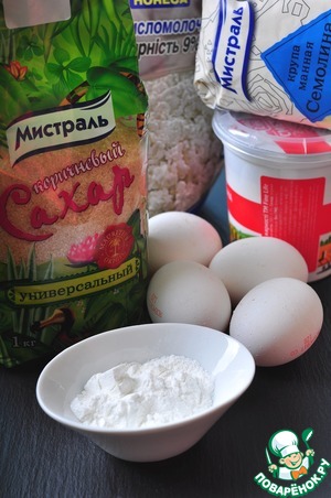 Ингредиенты для «Творожная запеканка со сметанным кремом и ягодами»: