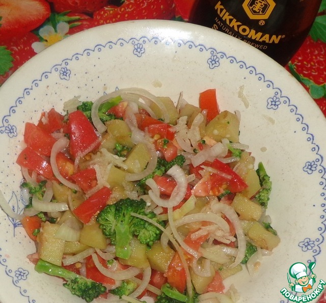 Ещё один вариант летнего салатика. Хочу отметить, что сочетание получилось достаточно интересное и вкусное. Брокколи, баклажан и репчатый лук отлично сочетаются в одном салате.