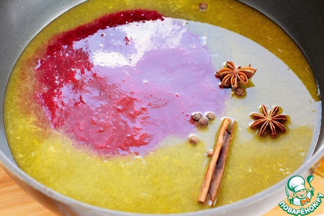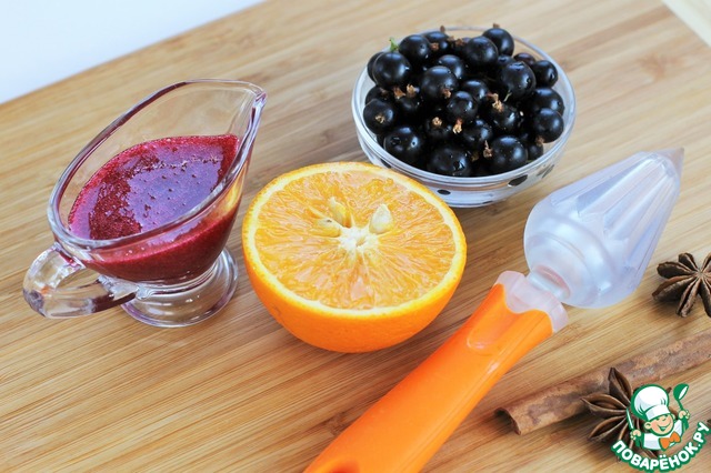 Поместить на сковороду сок апельсина, смородиновый джем, ягоды смородины, смородиновый соус, и специи. Уваривать соус на медленном огне до загустения. Следите, как только соус начнет густеть, добавьте отдохнувшие утиные грудки.