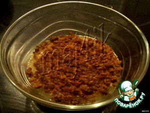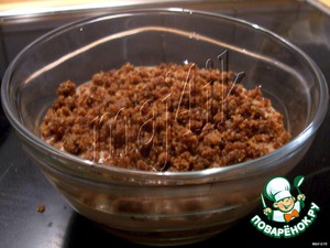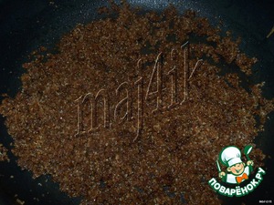 На сковородку насыпать 10 ст. л. крошки и 5 ст. л. сахара.