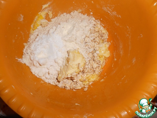 Добавить овсяные хлопья, перемешать.