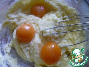 Взбить с сахаром и ванильным сахаром.