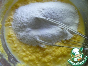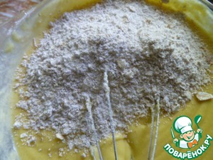 Просеять муку смешанную с содой. Перемешать.