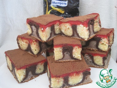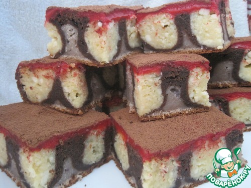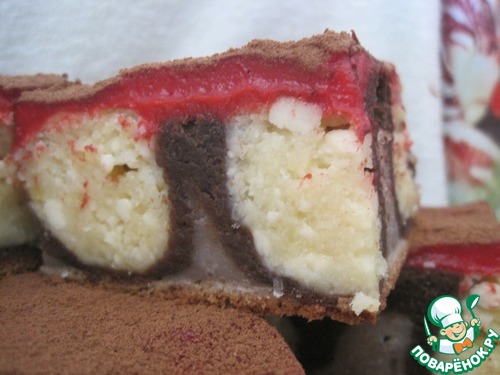 Красивый праздничный десерт, со вкусом творожено-кокосовых шариков, смородиново-шоколадного теста и заварного крема. Готовить очень просто, а результат впечатляет.