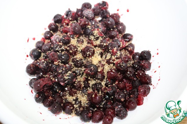 В чёрную смородину добавить тростниковый сахар и перемешать.