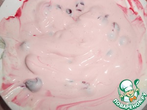 Из вишен удаляем косточки ( часть оставляем целыми для украшения). Взбиваем сметану, вишню, оставшийся тростниковый сахар и ванилин.