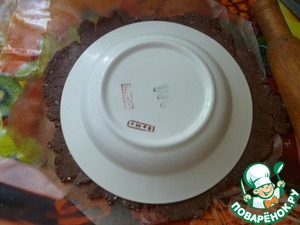Прикладываем тарелку и обрезаем ненужные края (которые складываем в пакет и держим в холоде).