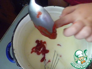 У меня было замороженное клубничное пюре, которое я заранее разморозила. -