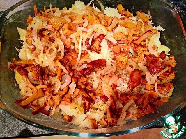Рецепт «Молодая картошка с лисичками под сырной корочкой»:
