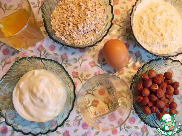 - Хлопья овсяные (100 гр. в тесто, 50 гр. в начинку) — 150 г