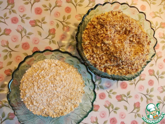Фундук и овсяные хлопья измельчить.
