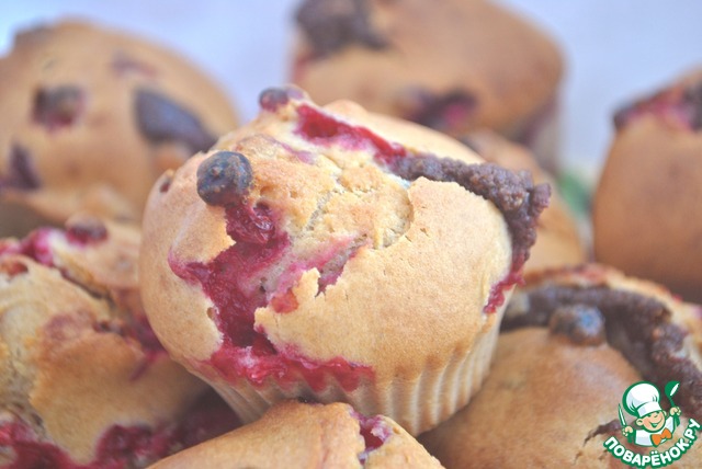 Рецепт «Кексики с брусникой и творожной начинкой»: