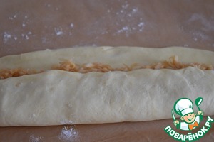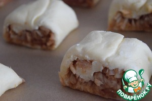 Теперь вторую часть "закидываем" на тесто. Получается как бы внахлёст.