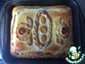 Начинки конечно же можно использовать разные. Я сделала 1 нач. - жареная капуста с яйцом и сливочным маслом, 2 -нач. - курица (2 окорочка) с грибами (подосиновиками), луком, сметаной и куриным бульоном. И после того, как тесто было готово (постояло в холодильнике). Приступаем к выпечке.