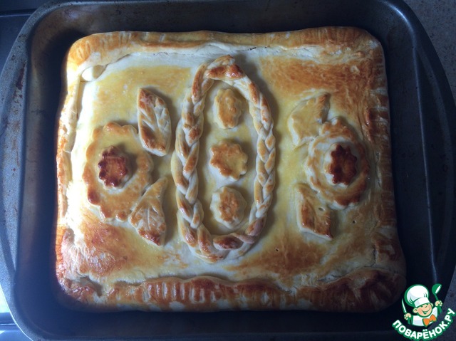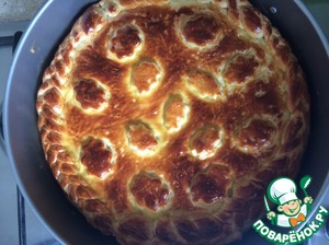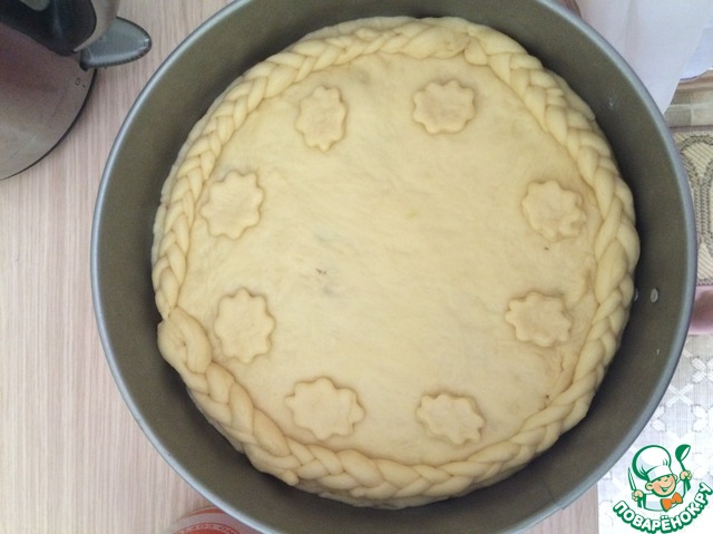 Тесто раскатываем до 5 мм и так, что бы хватало на стенки формы. Так же лист для того, что бы накрыть начинку. Оставляем минут на 20-30, чтобы тесто подошло.