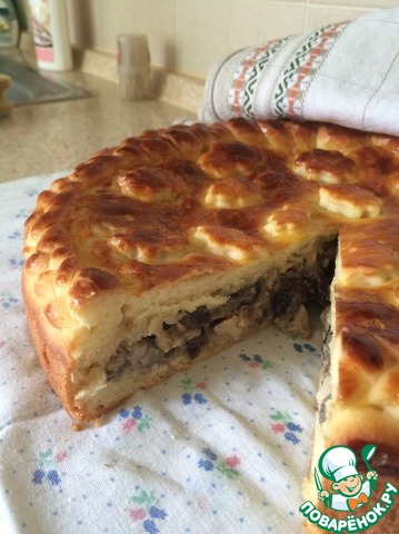 Тесто очень нежное, пушистое и вкусное. Здесь курица с грибами.
