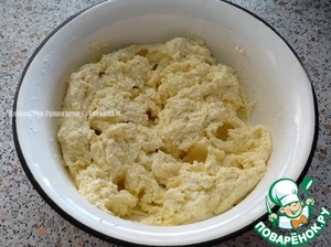 Замесить мягкое тесто, добавив к яичной массе творог, муку, ванилин;