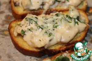 Рецепт «Запеченные тосты с курицей и шампиньонами»:
