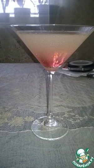 И в итоге получилось розовый газированный цвет. Спрайт и сироп я взбивал в пустой бутылке, чтобы равномерно уложить розовый слой.