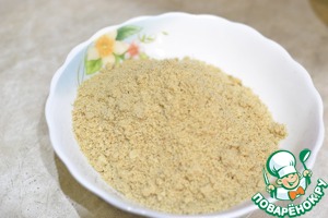 В крошку выливаем растопленное масло и тщательно перемешиваем