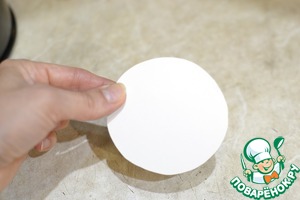 Из плотной бумаги вырезаем донышко по форме стенок и с помощью пищевой пленки собираем стаканчики, конечно, между стенками и донышком есть зазорчики, но они закроются крошкой печенья.