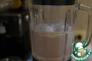 Уже в большой емкости блендера "Собираем" вместе творожную массу, клубничное пюре, желатин и перемешиваем до однородности.