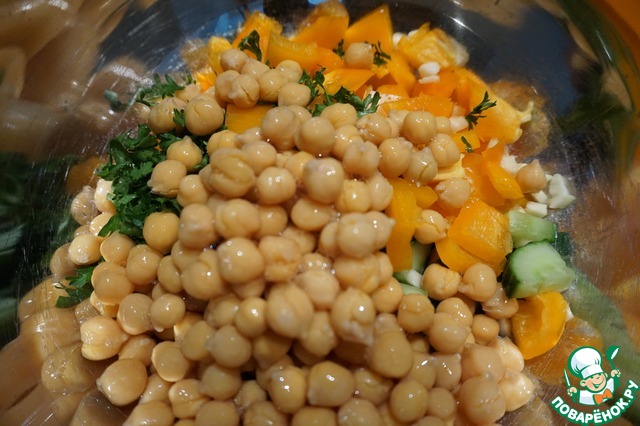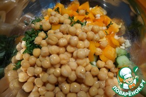 Горошек, в отличие от фасоли или нута, сладкий. Не знаю, насколько хорошо он впишется в этот салат...