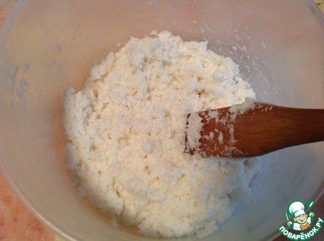Взбить белки (они должны быть охлажденные) до крепкой пены. Постепенно вводить сахар, не переставая взбивать до устойчивых пиков. Аккуратно ввести кокосовую стружку, перемешивая снизу вверх.