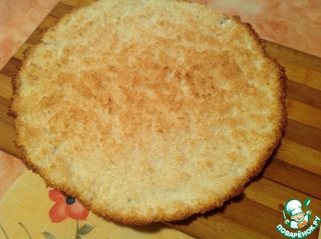 • Выпекать в разогретой до 180 градусов духовке 20-25 мин. Бисквиту дать полностью остыть и разрезать на 2 коржа.