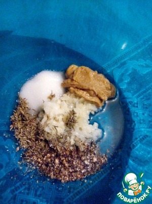 Туда же добавляем, горчицу, тимьян, соль, перец.