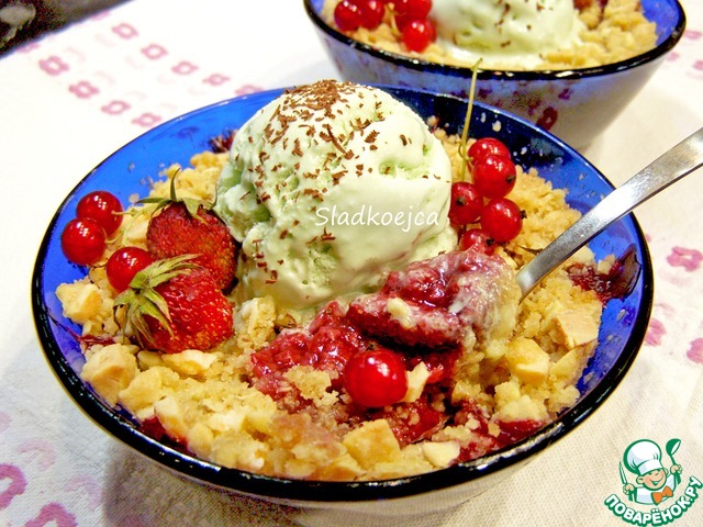 В чашки раскладываем ягодную смесь сверху пасыпку ставим в выпекаться на 30 минут.