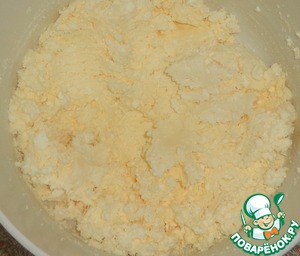 Приготовим тесто. Творог смешиваем с размягченным сливочным маслом.