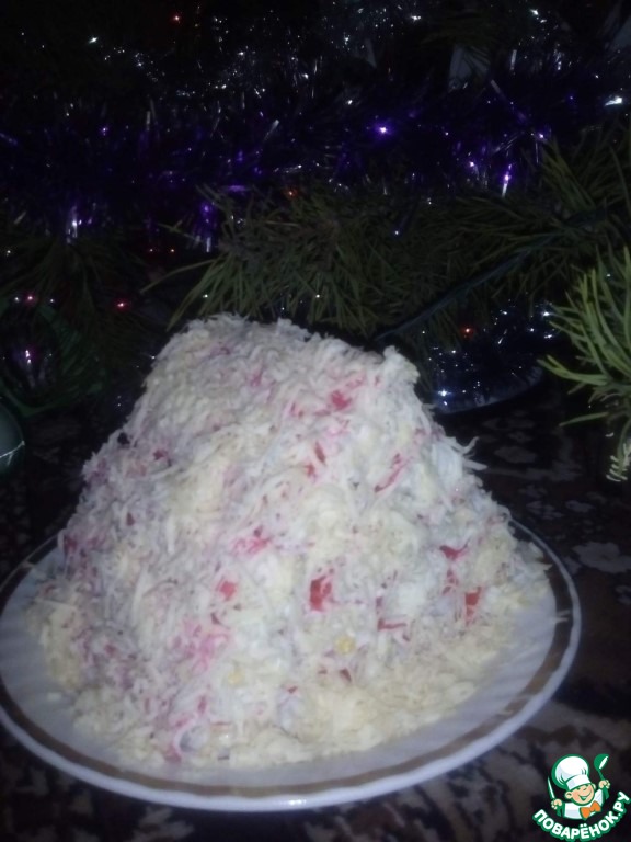 Вот и финиш! Осталось украсить нашу избушку тертым вареным яйцом и поставить в холодильник на 1 час. Приятного аппетита!