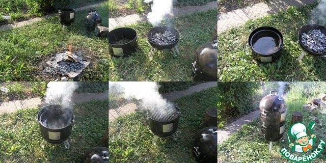 • Подвешиваем колбаски в коптильне и коптим 2 часа горячим дымом. Температура 80-100 градусов.