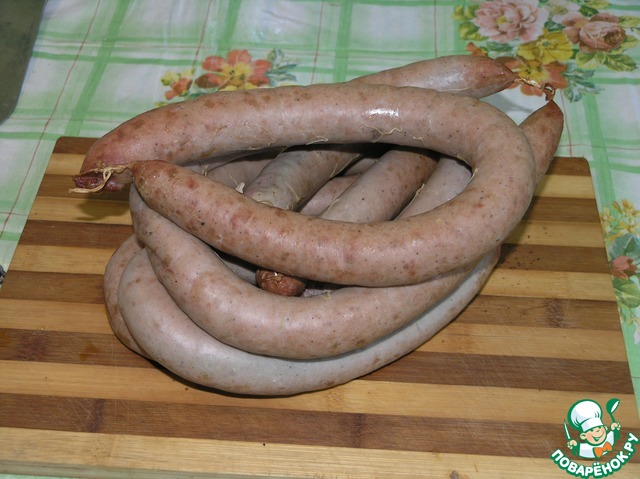 • Набитые сырые колбаски отправляем на несколько часов в холодильник.