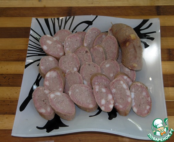 • Готовую колбасу несколько часов охлаждаем, нарезаем и подаем на стол.