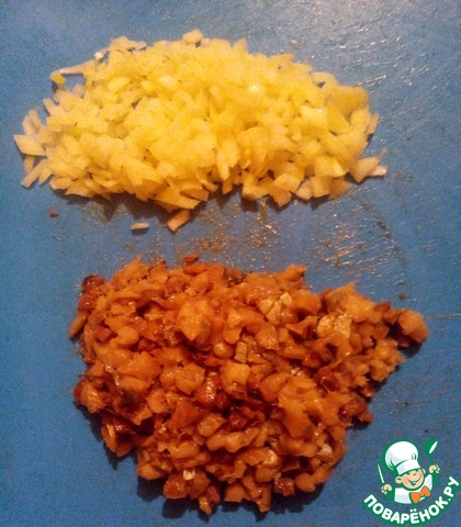 Чистим и ржем мелкими кубиками селедку и лук.