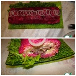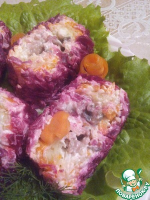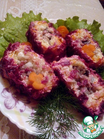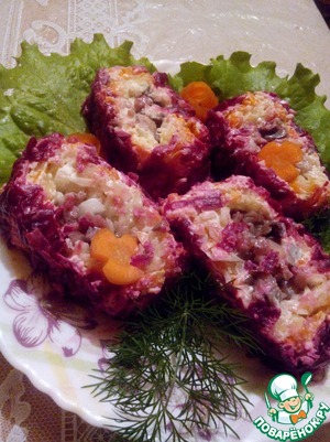 Сельдь под шубой любимое всеми блюдо, у каждой хозяйки в закромах имеются свои нюансы приготовления этого салата))). У меня обычная селедка под шубой, но... своеобразной формы.