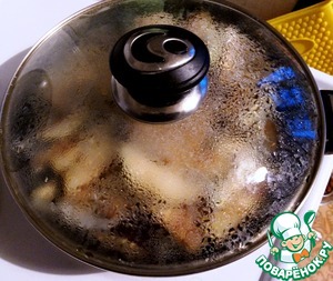 Введите гвоздику, соль, перец, лавровый лист. В последнюю очередь уксус и закройте крышкой. Подержите на огне 30 секунд.